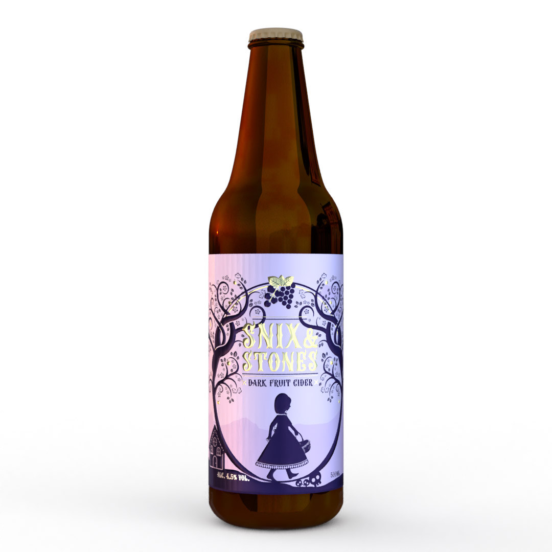 Snix & Stones is a refreshing blend of apple cider combined with dark fruits. The product label features variable digital gold foiling and digital spot varnishing, resulting in a textured finish that noticeably differentiates the product from others on the shelf.